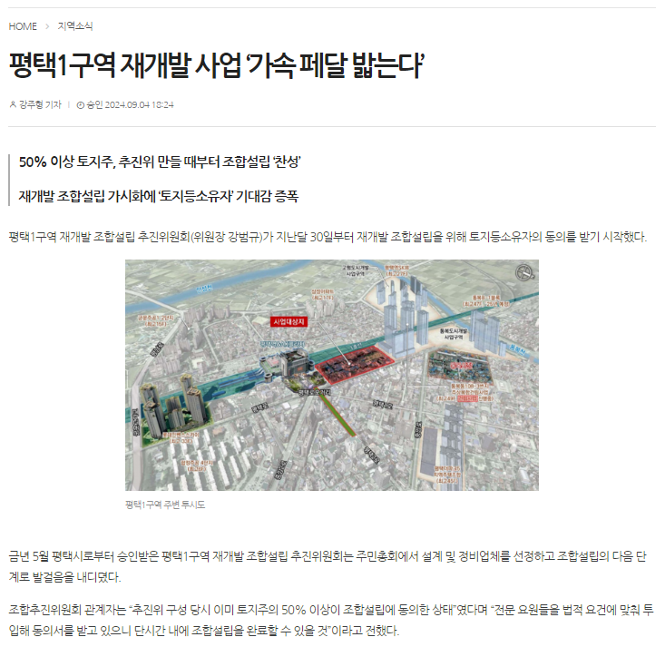 평택1구역 재개발 사업 ‘가속 페달 밟는다’ ㅣ 2024.09.04