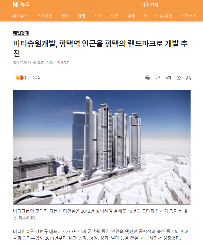 비티승원개발, 평택역 인근 재개발 랜드마크로 추진ㅣ매일경제 네이버뉴스 22.01.19