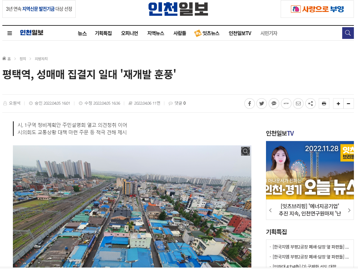[인천일보] 평택역, 성매매 집결지 일대 '재개발 훈풍'